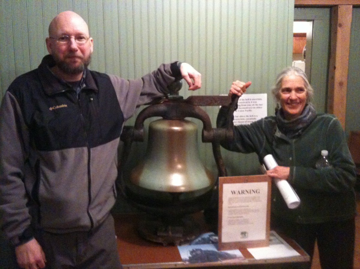 IMG_0780 Published March 11, 2013 at 2048 × 1536 in Report of the Friends of the West River Trail Annual Meeting ← Previous Next → Kathleen & Lester with the old Santa Fe RR bell that was donated (photo by Chrissy Blaylock)