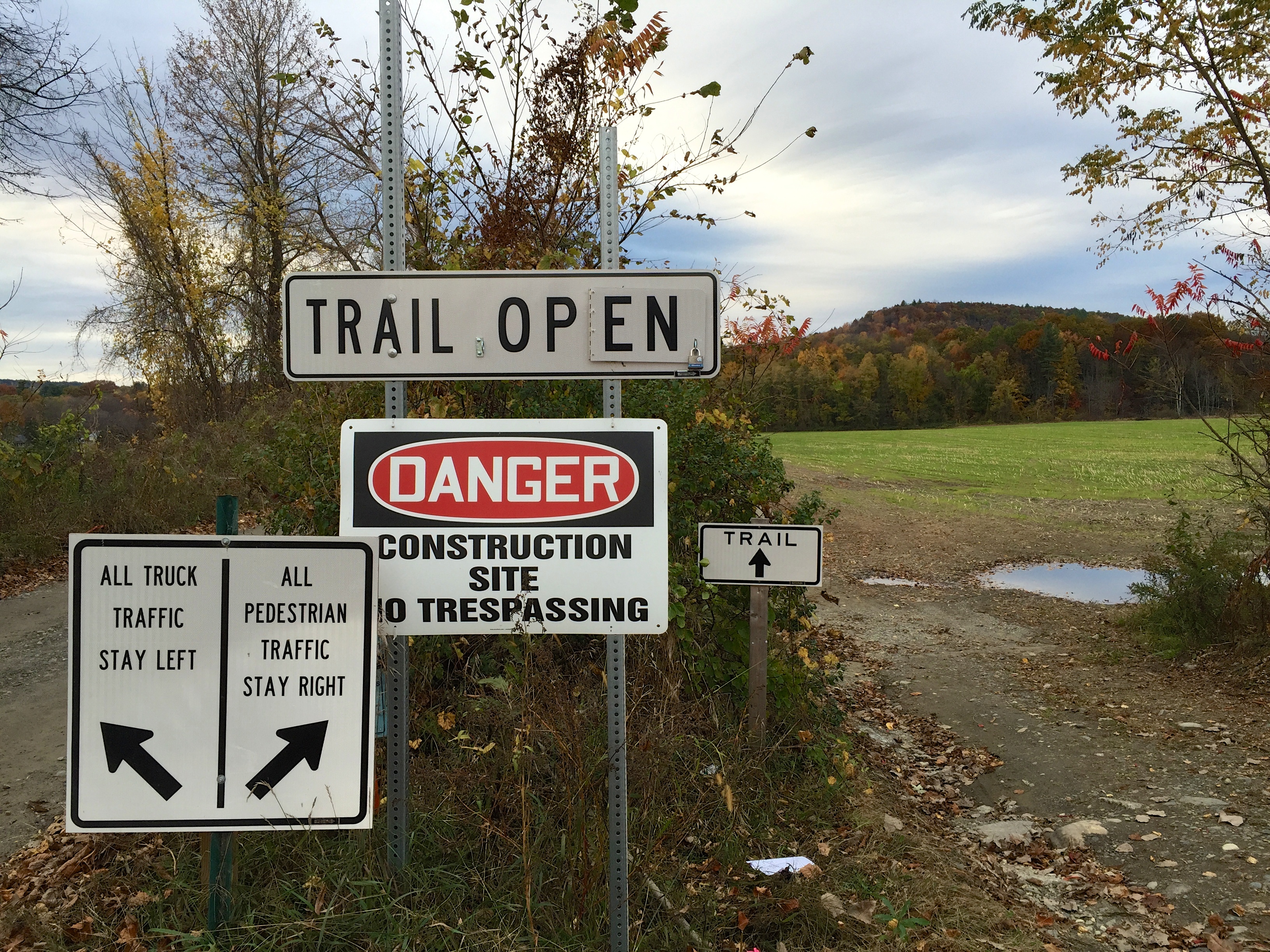 West River Trail Published October 29, 2014 at 3264 × 2448 in Fall 2014 Newsletter & Trail Work Day ← Previous Next → West River Trail, detour signage, Oct 2014, photo credit Elin Waagen