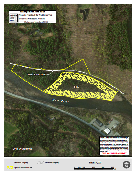 At the recent annual meeting, FWRT board members Lester Humphreys and Paul Cameron gave a presentation on the Riverstone Preserve, a 23-acre parcel which the group acquired in 2013. The land sits one mile north of the Marina restaurant in Brattleboro, between the West River Trail and the river itself. The southern section subcommittee purchased the land for $97,000. One-third of the purchase price was raised in donations and the rest came from a grant from the Vermont Housing Conservation Board. The Vermont Land Trust holds a conservation easement on the property.