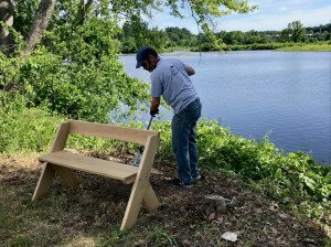 The West River Trail relies solely on the generosity and help of volunteers and donations to make improvements and we have a team of folks to thank for making the picnic tables happen. Thanks to Jim Webster (pictured above) for building the tables, to Mark Anderson of Trevett Millworks for donating the white oak lumber, to Jesse Wagner for making the connection for the donation of the lumber, to Jesse and Mark Westa for picking up and delivering the lumber to Jim, and to Jason Cooper (pictured above) for help with delivery and installation.