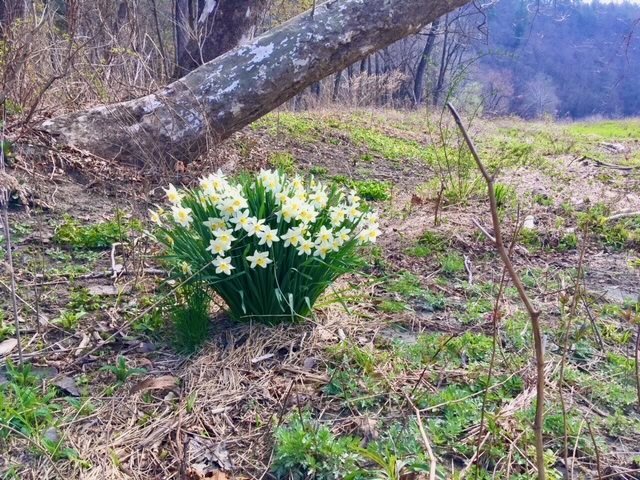 Curious, they returned to the spot together about ten days later. To their surprise, they found a cluster of daffodils in full bloom, brightening up this unexpected location.