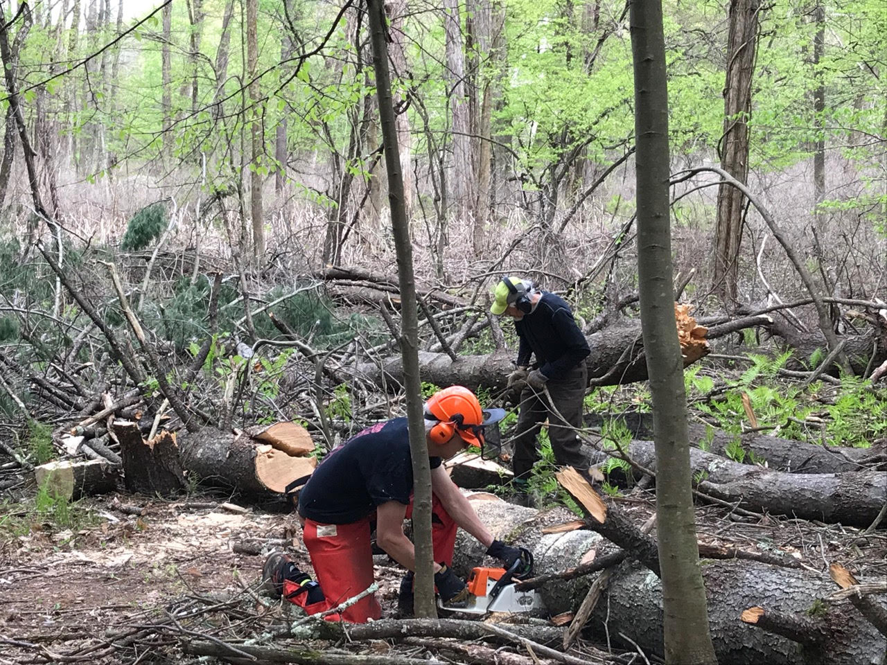 Recent maintenance work on the West River Trail tackled clogged drainage ditches and fallen trees. Trail workers cleared drainage areas and chainsawed downed logs. A huge thanks to trail volunteers for their hard work!
